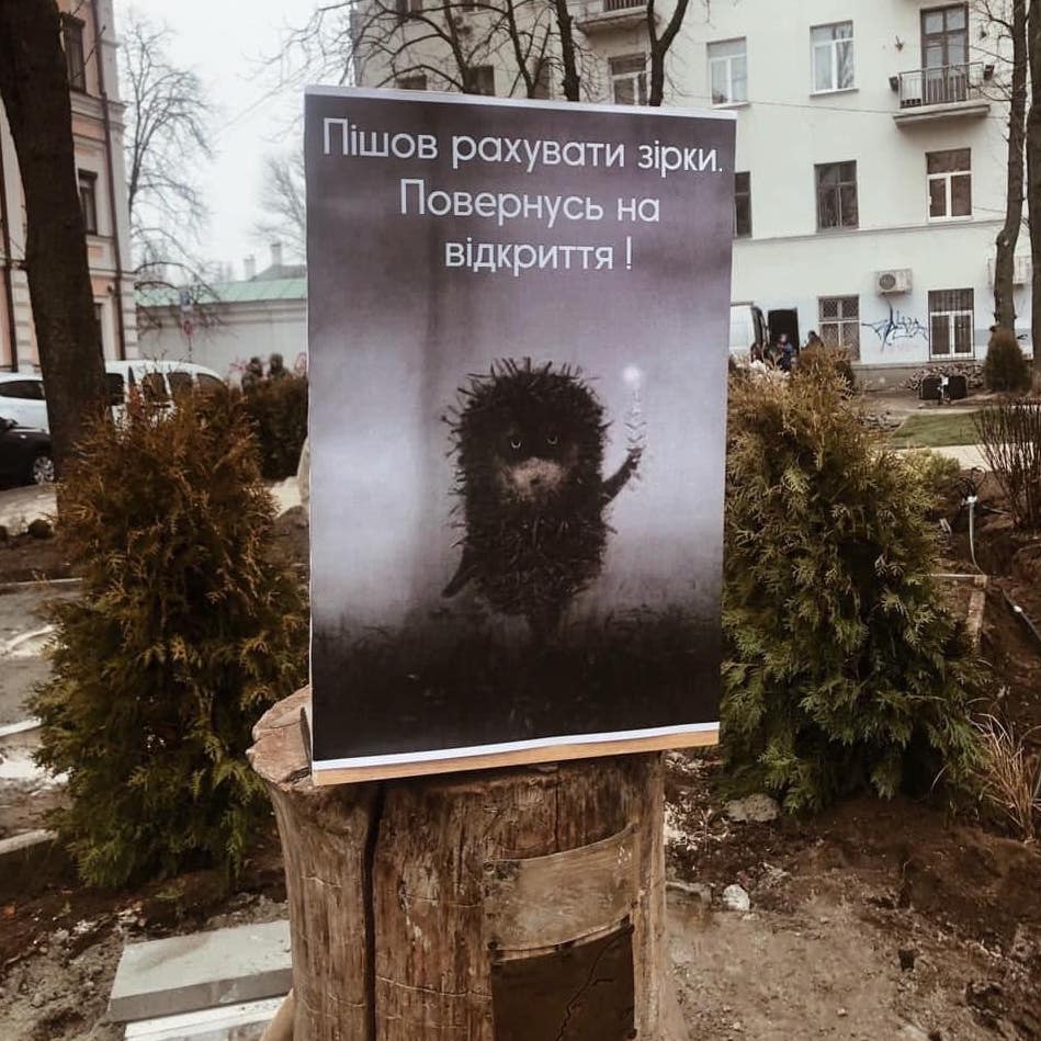 Скульптуру, присвячену персонажу мультфільму «Їжачок у тумані», встановили неподалік від Золотих воріт у 2009 році.