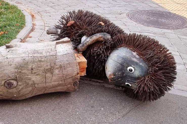 Цими вихідними на розі Георгіївського провулку та вулиці Рейтарська невідомі зруйнували скульптуру «Їжачок у тумані».