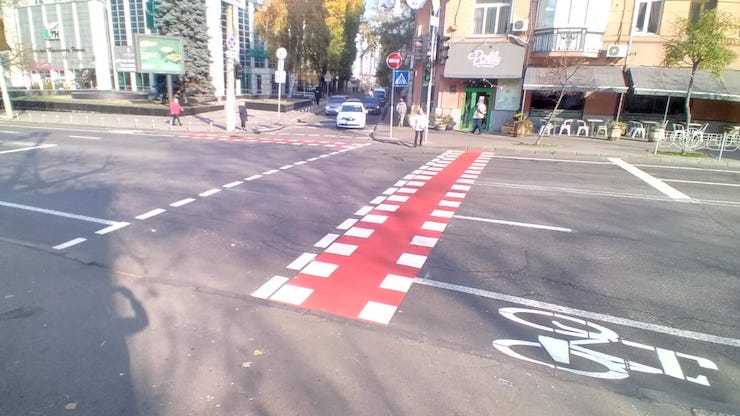 На вулиці Січових Стрільців змінили схему організації дорожнього руху, влаштувавши велосмуги замість смуг, запаркованих автомобілями. Про це повідомляє пресслужба КМДА.