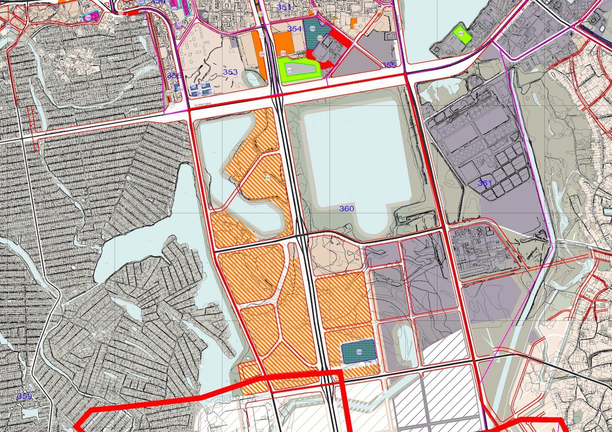 Фрагмент Генплану Києва з позначенням дороги між озерами Небреж і Тягле
