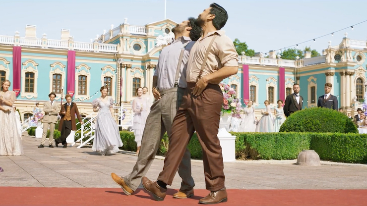 Сцена перед Маріїнським палацом була однією з наймасовіших і найскладніших — у ній взяли участь 300 акторів масовки, оркестр і понад 50 танцівників.