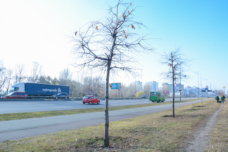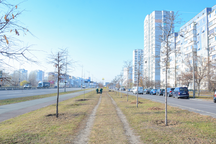 На проспекті Бажана висадили «зелений бар’єр» із лип