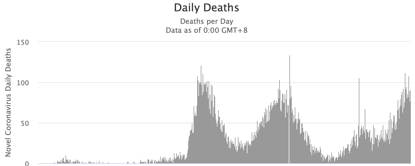 Кількість добових смертей у Греції. Графік: worldometers.info