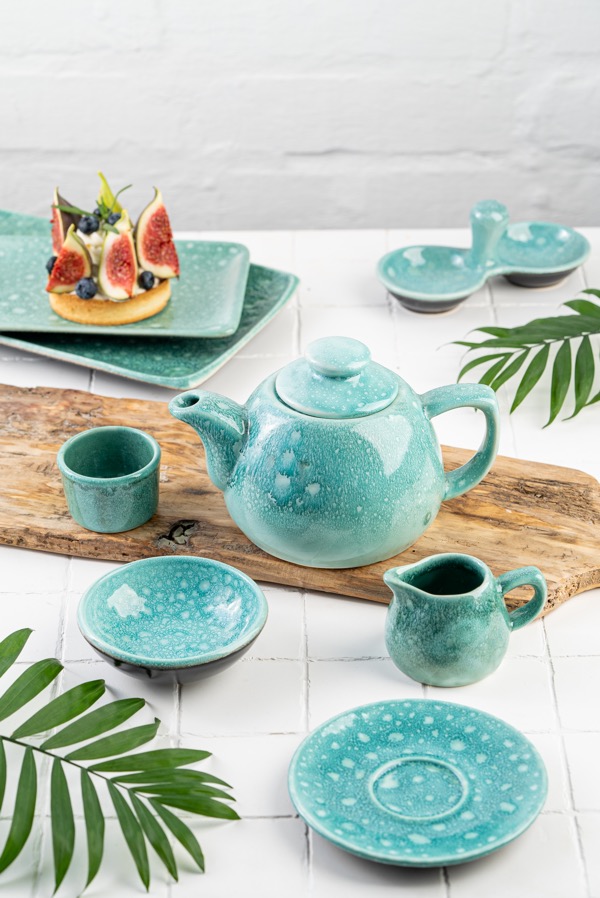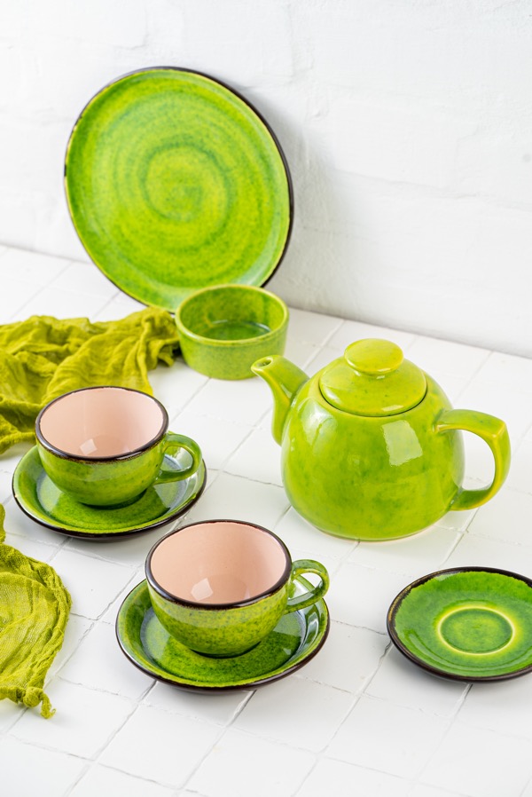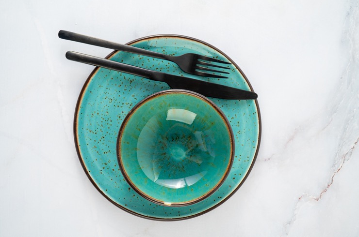 Є й посуд майже монохромний, суцільно молочного кольору, але вирізняється характерними кольоровими вкрапленнями. А найпопулярніший серед покупців — бірюзовий.