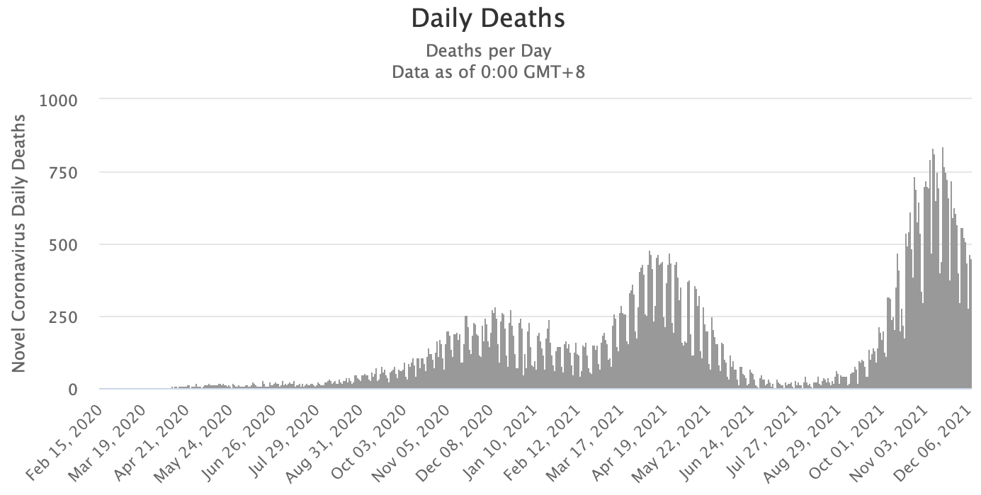 Графік добової смертності від COVID-19 в Україні / worldometers.info