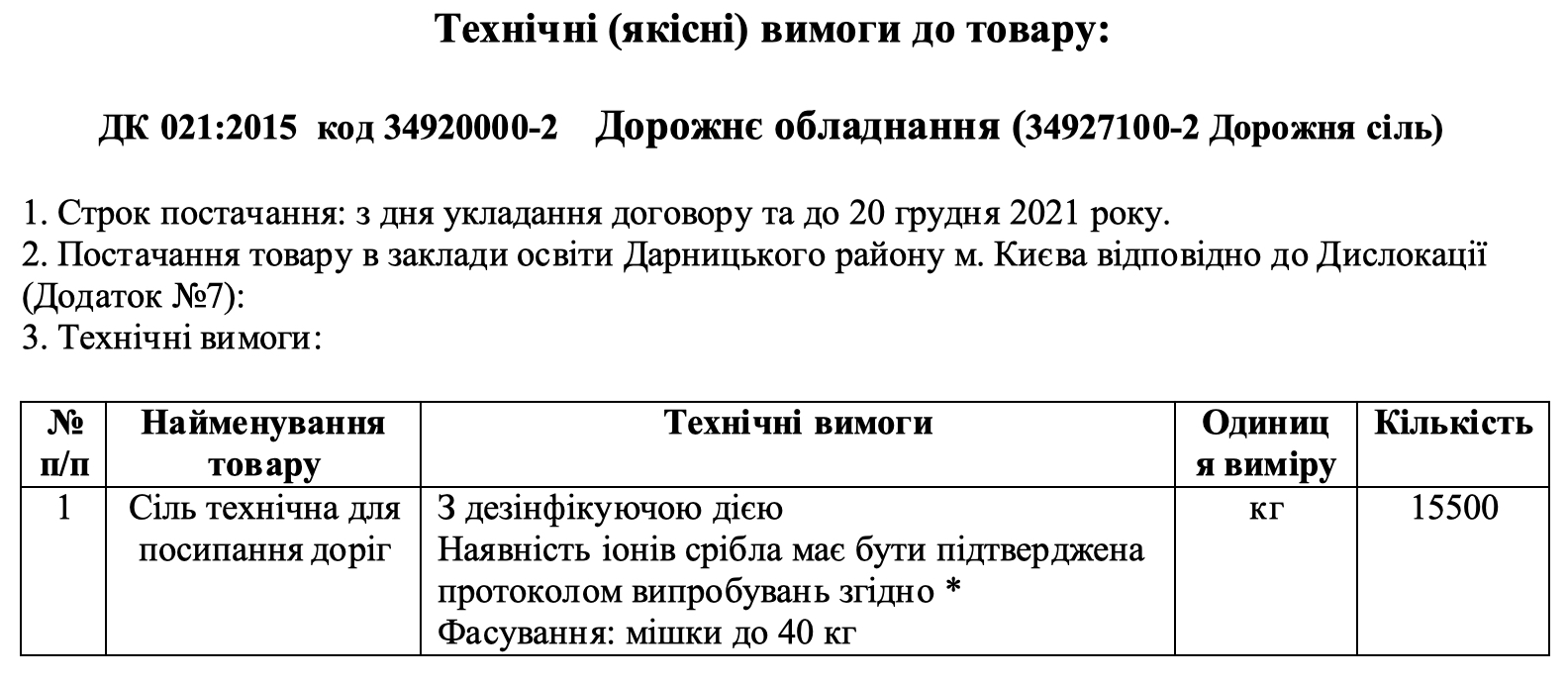 Дарницька РДА наполягала, що планує купити сіль саме з іонами срібла, та в результаті торги було скасовано.