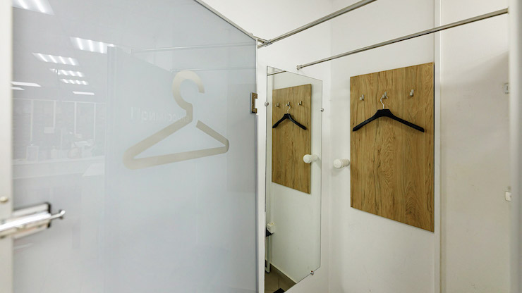 У примірочних є вішалки для одягу, стілець і дзеркало у повний зріст. Повний перелік відділень з примірочними доступний за посиланням.