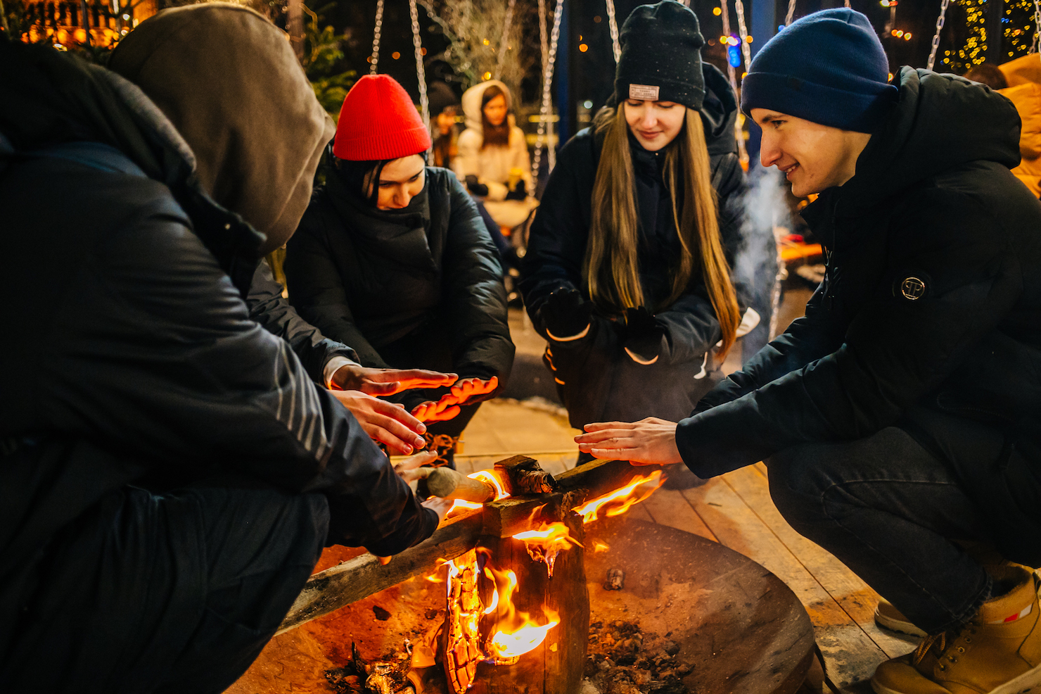 Конструкції навколо захищають простір від поривів вітру, а ще тут можна погрітися біля відкритого вогню.