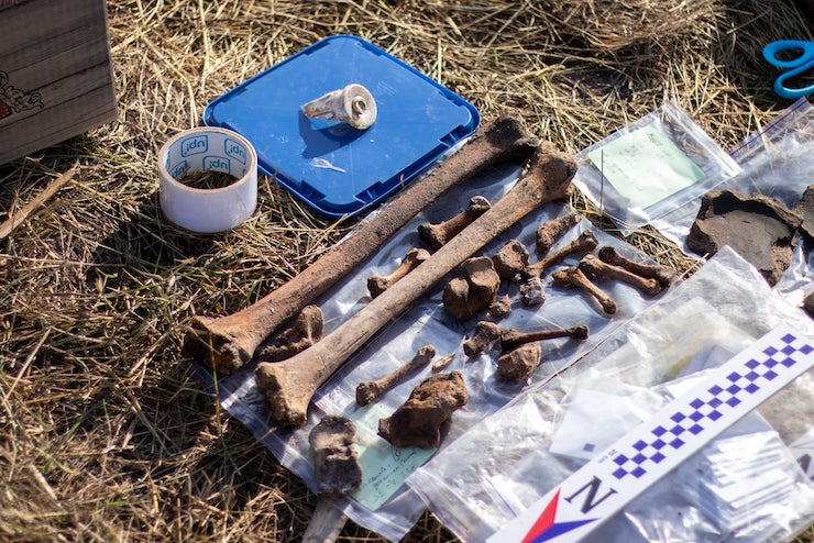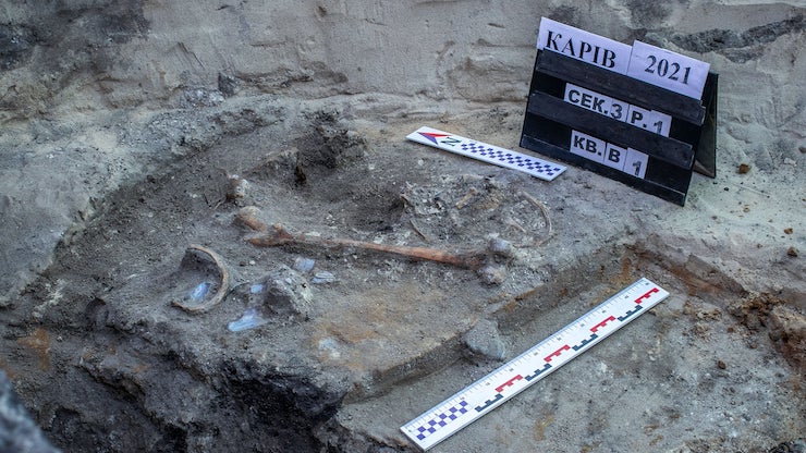 «Крім людських решток, археологи знайшли фрагменти двох скляних кубків, аналогів яким в Україні немає. А також: уламки рогового тришарового гребеня, бронзову застібку (фібулу), частини дерев’яної скриньки, оббитої бронзовими пластинками з декоративними цвяшками і половинку жетона з білого пастового скла. Такі жетони використовували для римських настільних ігор», — розповідає директорка Департаменту Олена Василько.
