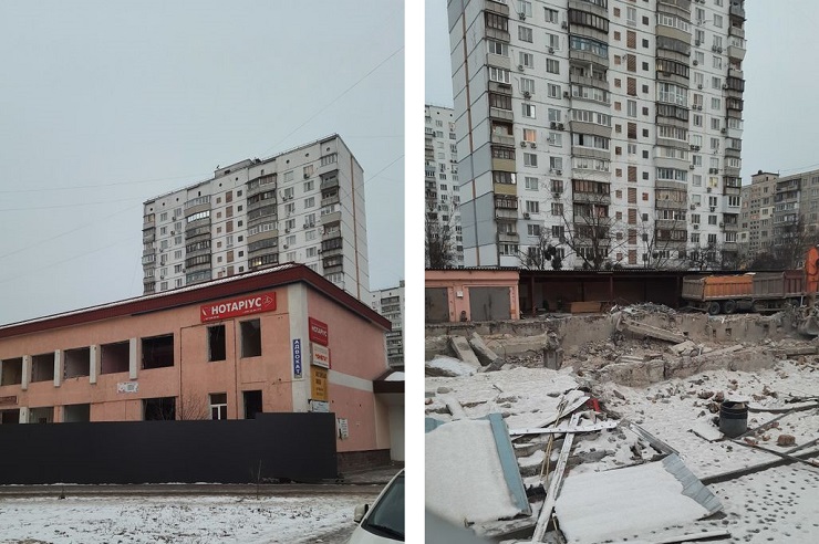 Біля метро «Мінська» зносять будівлю під житлову висотку. Офіційно це — реконструкція