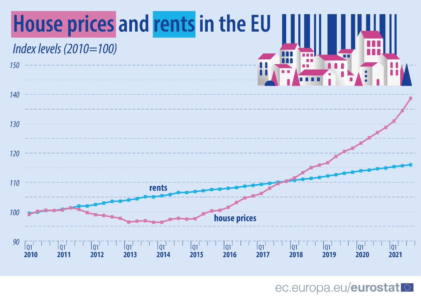 Вартість житла в Євросоюзі зростає, але якщо оренда підвищувалася повільно й рівномірно з 2010 року, то купівля зазнавала коливань і в останні роки демонструє стрімке подорожчання. Такі дані опублікував Євростат.