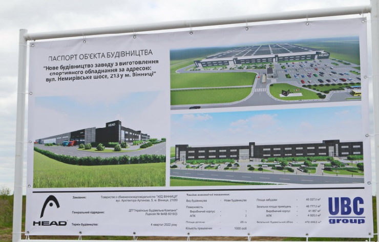 Компанія HEAD Group отримала дозвіл на початок будівництва у Вінниці заводу з виготовлення спортивного обладнання, повідомляє місцеве видання «Вежа».
