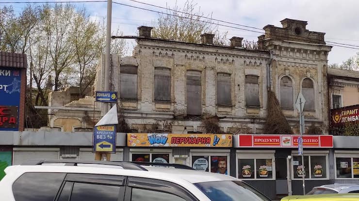 На фотографіях на фоні видно напівзруйновану будівлю ХІХ століття — це житловий будинок при колишній броварні Карла Шульца, зведений 1881 року. Її почали зносити у квітні 2020 року й, як видно з фотографій, процес демонтажу призупинився.