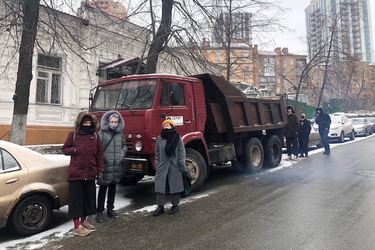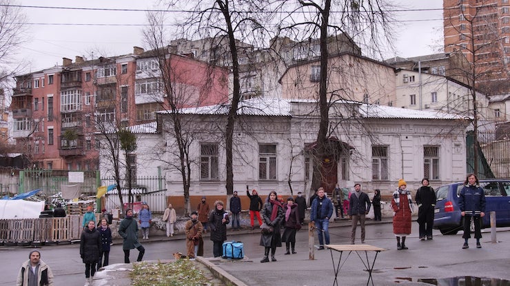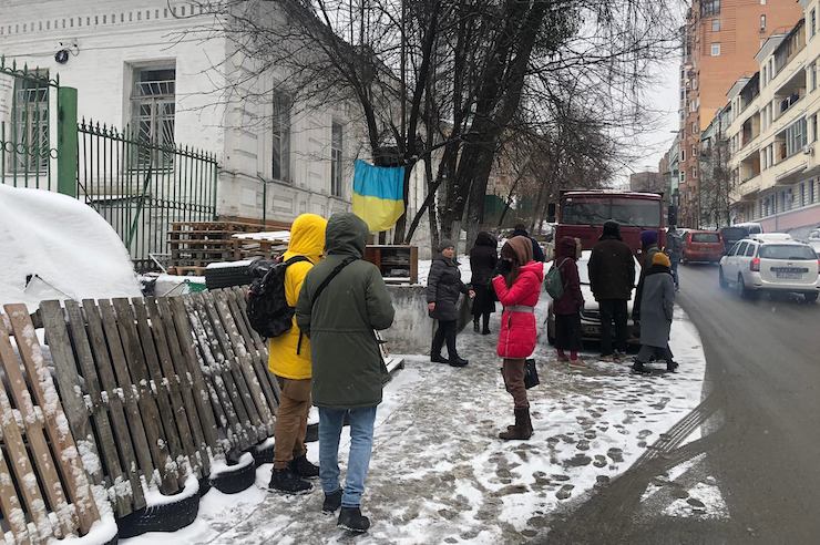 У фейсбук-групі «Садиба Барбана» публікують відео КАМАЗів, які приїхали на Оберваторну, та повідомляють, що «забудовник готує будівлю до знесення». Кияни, які зараз на місці, блокують вантажівки, та закликають підходити всіх небайдужих.