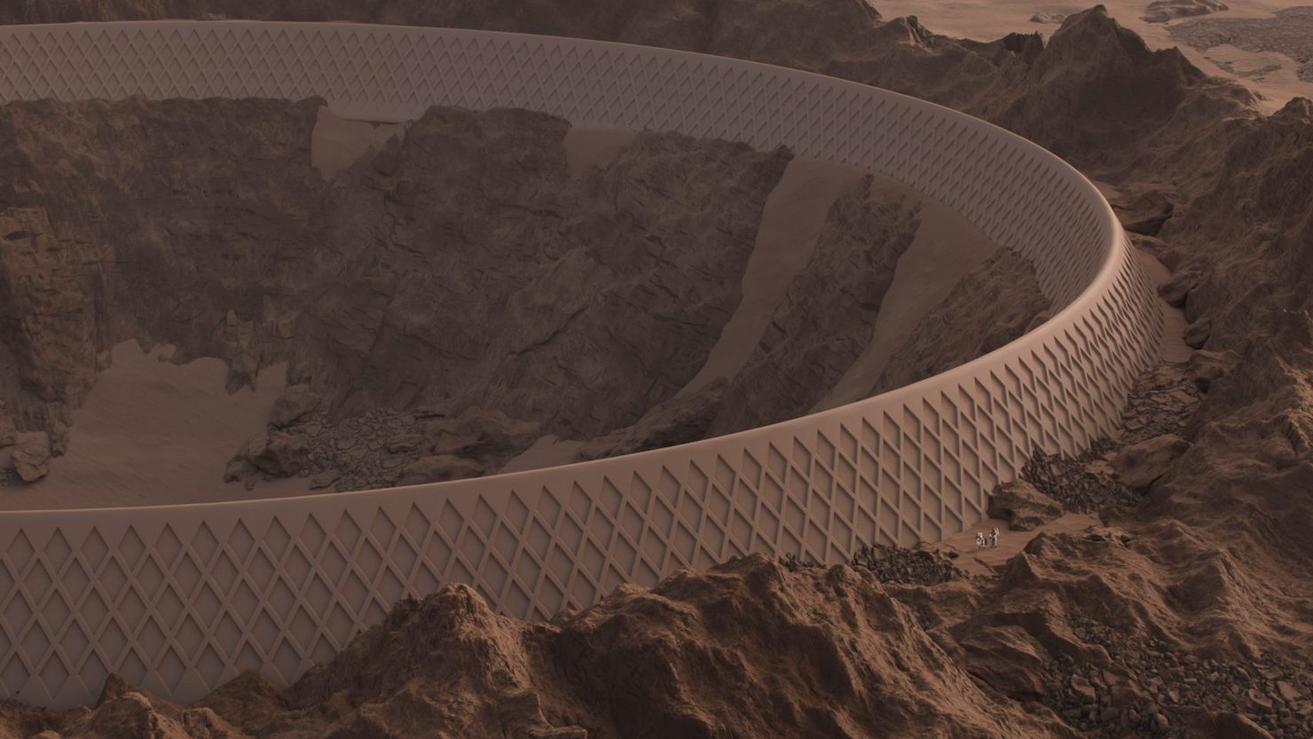 Кільцеподібну структуру планують розташувати всередині кратера, котрий захищатиме від складних умов на Червоній планеті, зокрема піщаних бур, метеоритних дощів і сонячної радіації.