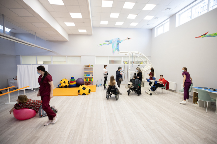 У двоповерховому центрі є відділення діагностики, арттерапії, сенсорно-інтеграційної терапії, логопед, дефектолог, психолог, тренажери для розробки кінцівок, моторної реабілітації рук, навчання ходінню.