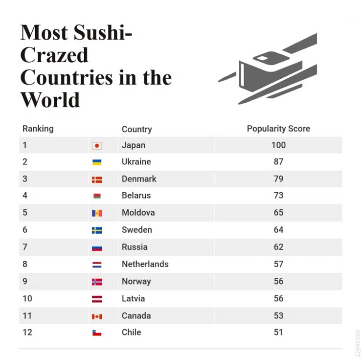 У рейтингу країн за популярністю суші попереду лише Японія.