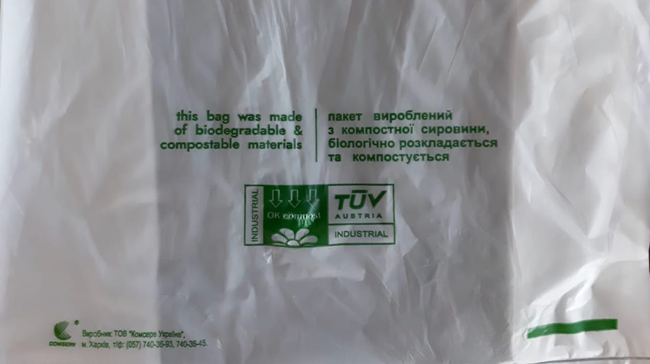 Однак такі пакети повинні мати маркування OK COMPOST HOME. Якщо ж на пакеті маркування OK COMPOST INDUSTRIAL, то для розкладання необхідні спеціальні умови промислового компостера, яких в Україні немає. Крім того, у складі не має бути домішок пластиків і оксобіодобавки d2w.