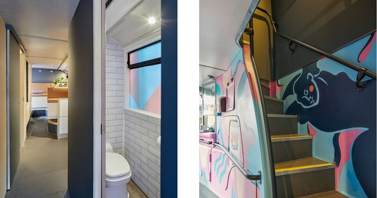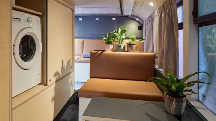 На першому поверсі автобусу встановили шафи, сидіння, пральну машинку, туалет та душ, на другому – розмістили кабінети підтримки. Також у кожному переобладнаному автобусі планують зробити спеціальні послуги, наприклад, стоматологічний кабінет. В іншому автобусі планують створити кабінет психологічної підтримки.