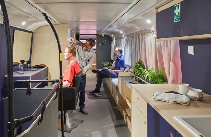 Організація Change Please переобладнала два двоповерхові автобуси на центри допомоги бездомним, які будуть курсувати Лондоном. Над проєктом працювало архітектурне бюро ТР Вennett, повідомляє Fast Company.