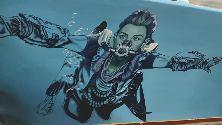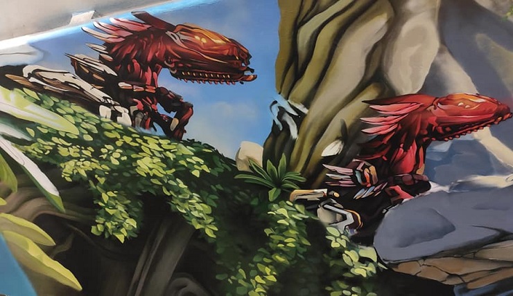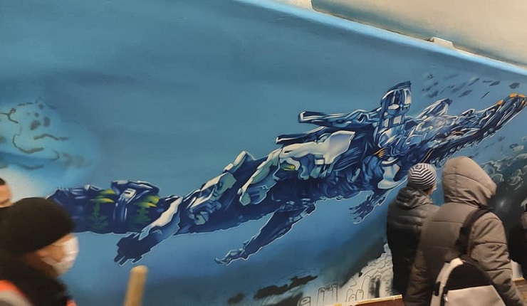 На стінах і стелі переходу зобразили головну героїню гри Елой під водою та роботів.