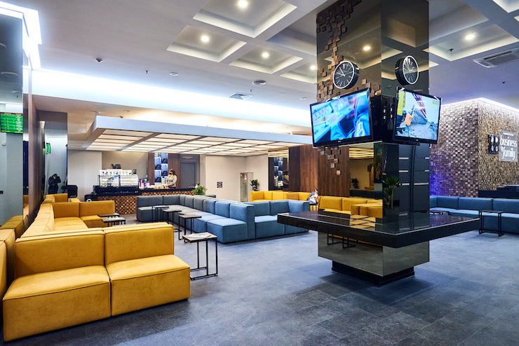 В UZ Lounge розміщується коворкінг-зона, переговорна кімната, дитяча кімната, вбиральня зі сповивальним столиком, душові, бар-зона з дитячим меню і бібліотека.