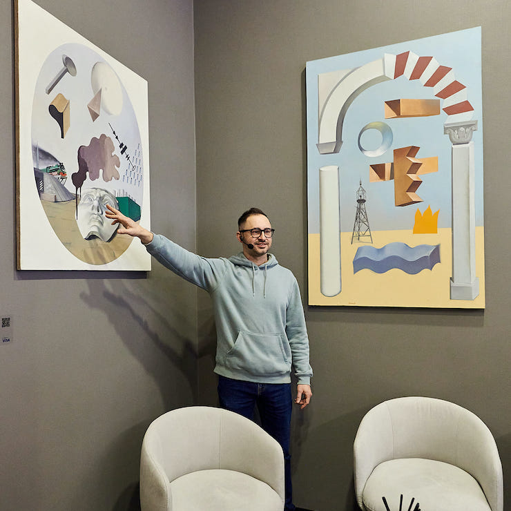 Зараз в UZ Lounge виставляють твори кримського сюрреалістичного кубізму.