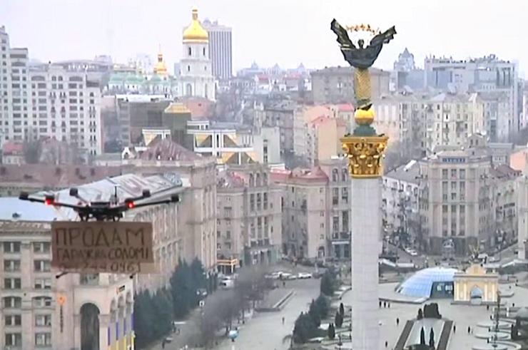 У трансляції британського агентства Reuters з Майдану Незалежності кияни пропонували купити гараж у Солом’янському районі. Номер у «оголошенні» належить посольству Росії, а гараж – це сама будівля представництва.
