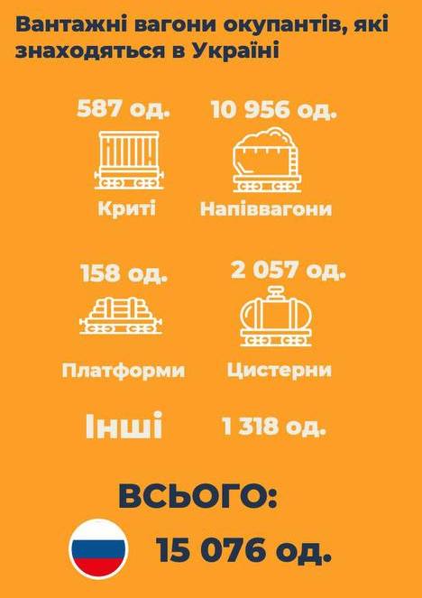 Серед 15 тисяч російських вагонів, що знаходяться в Україні, є 3000, що однозначно належать компаніям РФ.