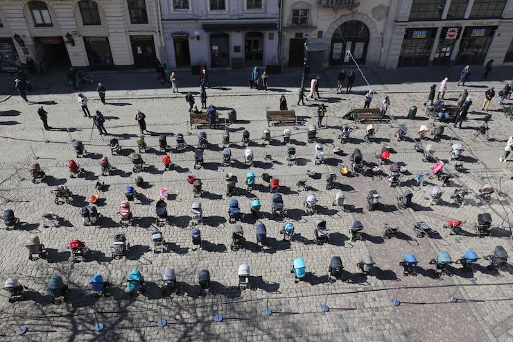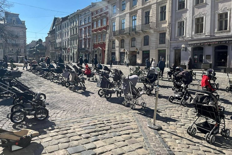 У центрі Львова поставили 109 порожніх дитячих візочків