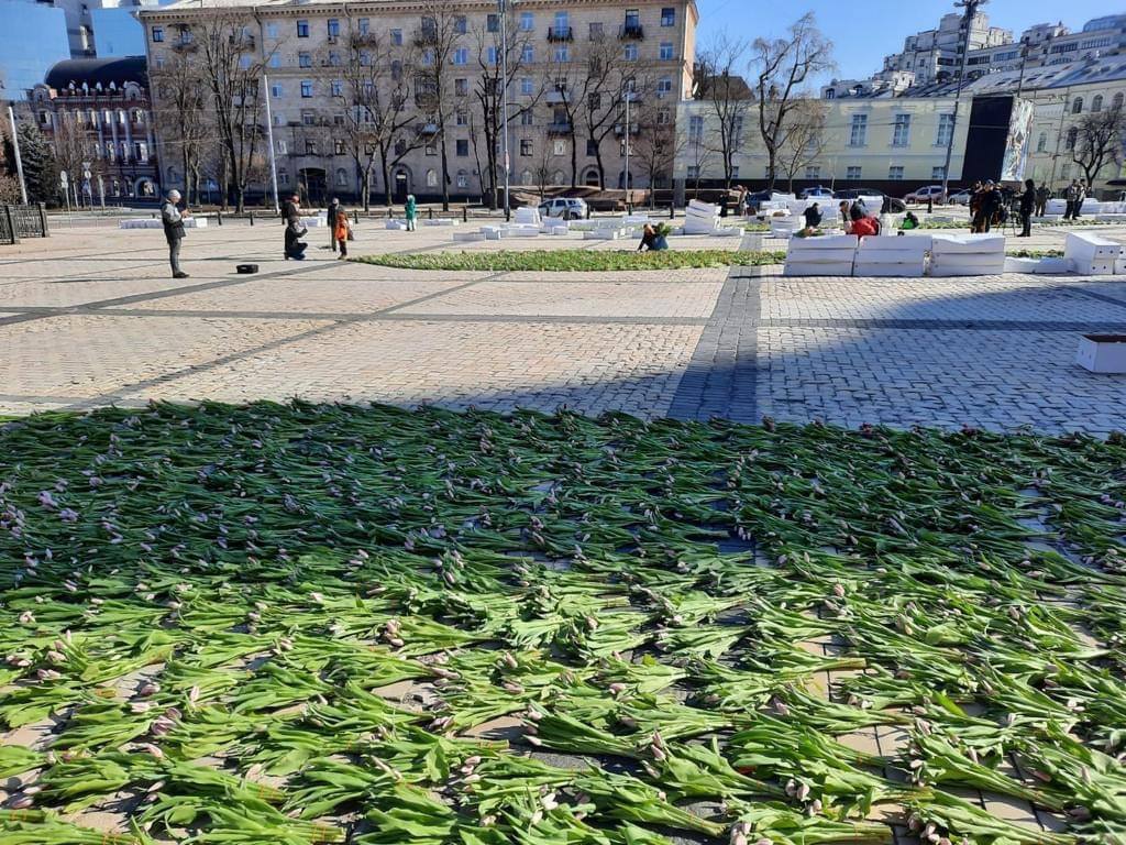Потім квіти можна було забрати додому, йшлось в сюжеті ТСН. Їх також отримали жінки з тероборони столиці.