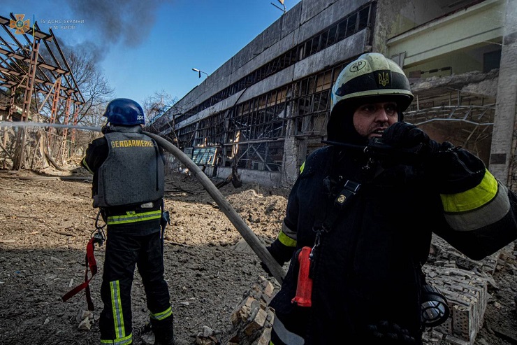 Сьогодні російські військові обстріляли район Оболонь, у результаті загорілись дві будівлі та вантажівка. Про це повідомляє ДСНС. За дві години пожежу вдалось ліквідувати. Інформація щодо жертв та постраждалих уточнюється.