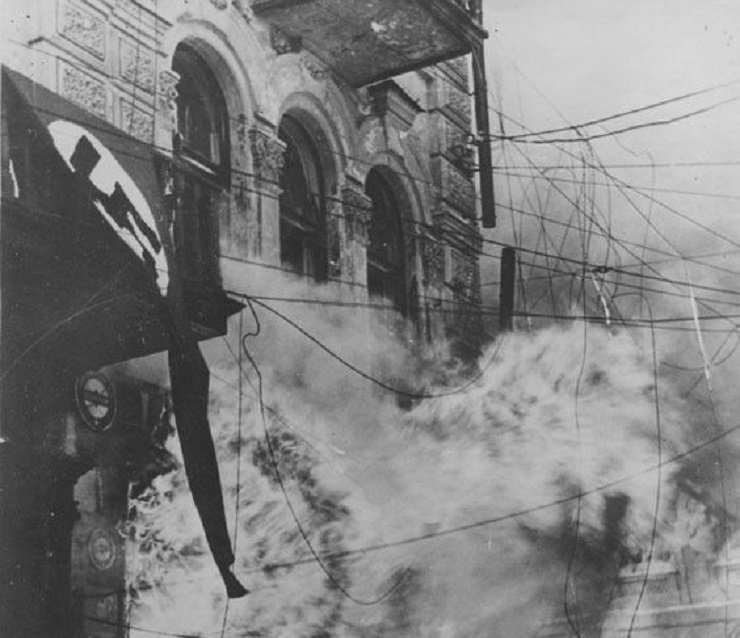 Пожежа в німцецькій комендатурі на вулиці Хрещатик 30\1. Фото: photohistory.kiev.ua