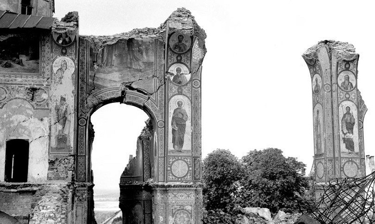 У листопаді 1941 року президент Словаччини Йозеф Тито, який перебував у Києві з візитом, відвідав одну з найвідоміших церковних памʼяток — Успенський собор Києво-Печерської лаври. Через кілька годин у ньому пролунало три потужні вибухи. Один з найзнаковіших соборів Києва, який стояв ще з 11 століття, був зруйнований. Унікальні фрески, ікони та безліч артефактів назавжди втрачені. Успенський собор відновили лише в 2000 році.