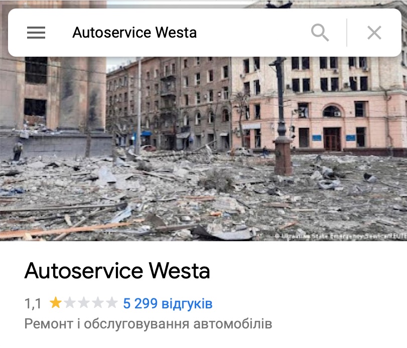 Автопробіг пройшов у день, коли з’являлися перші фото і відео убитих на вулицях Бучі й усі шпальти світових ЗМІ були присвячені трагедії. Обурені люди, почали писати негативні відгуки на автосервіс Westa у гуглі та прикріпляти фотографії зруйнованих українських міст. Зараз рейтинг бізнесу впав до 1,1.