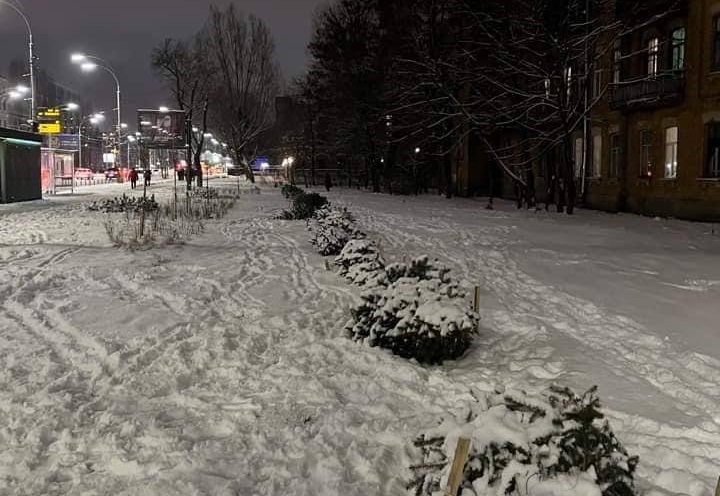 На Повітрофлотському проспекті знову висадили ялинки, які вандали зрізали взимку