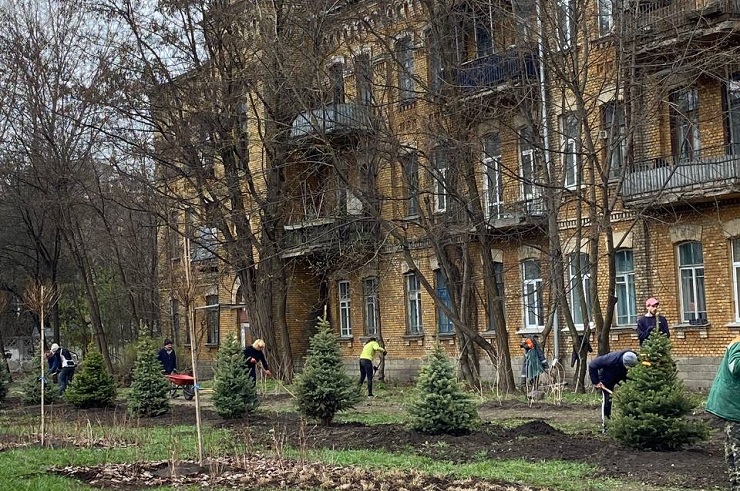 Волонтери та комунальники загалом висадили 55 дерев, 82 кущі і 400 одиниць багаторічних рослин, облаштували газони і квітники, прибрали опале листя і сміття.