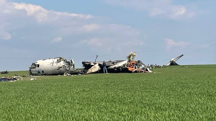 Літак виконував технічний рейс. Причини падіння з’ясовуються, однак, за попередньою інформацією, літак зачепив електроопору, внаслідок чого загорівся двигун.