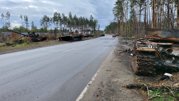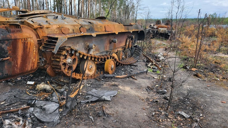 Після відступу російських військ тисячі жителів Київської області повертаються додому й бачать купи залишків ворожих танків і БТР — свого роду музей просто неба.