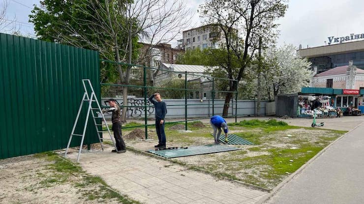 Підрядники забудовної компанії встановили будівельний паркан на вулиці Жилянській біля універмагу «Україна», з боку станції трамваю «Площа Перемоги», повідомляє депутатка Київради Ксенія Семенова.