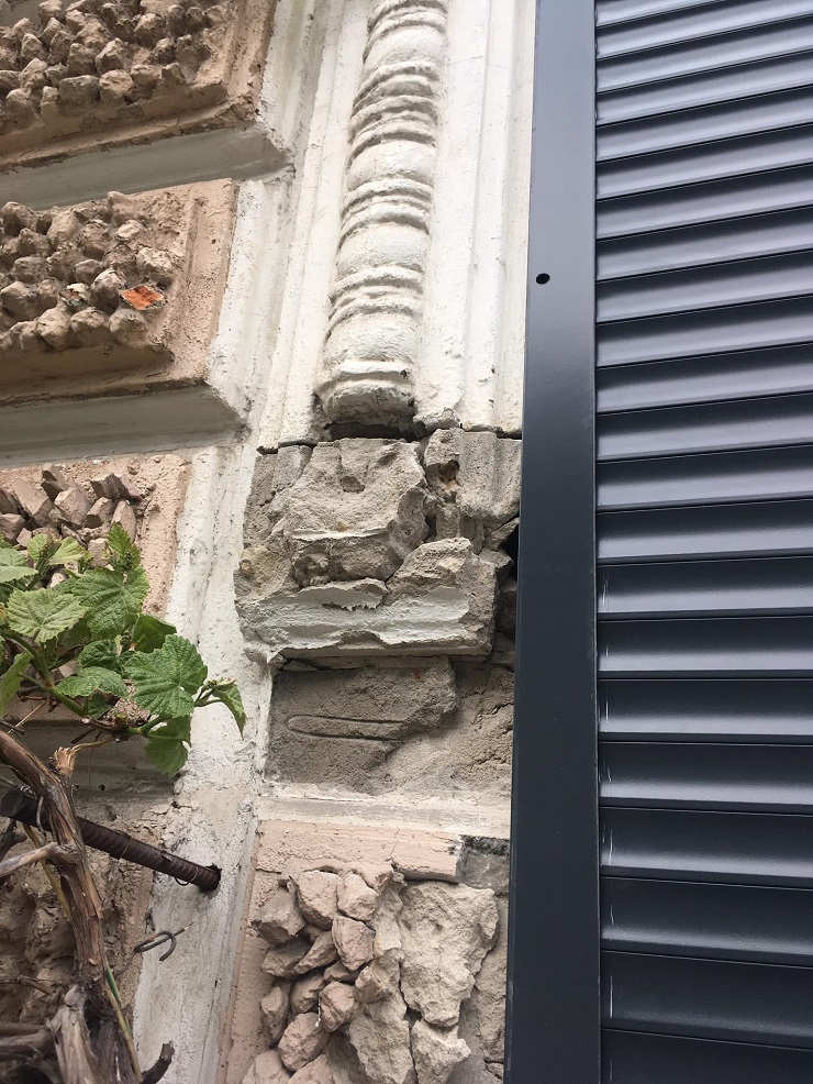 У Києві орендар приміщень в історичному будинку на вулиці Хмельницького, 50 без дозволів проводив фасадні роботи – розібрав стіну першого поверху, щоб зробити ще один вхід та встановив ролети та вікнах та дверях.