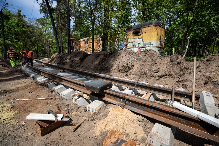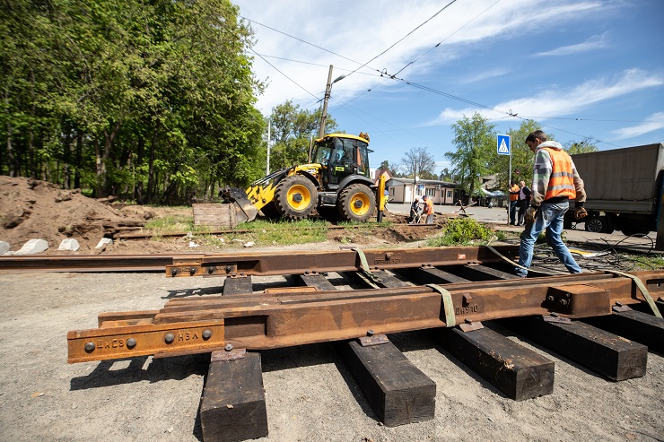 У Пущі-Водиці відновлюють трамвайні колії, зруйнувані обстрілами