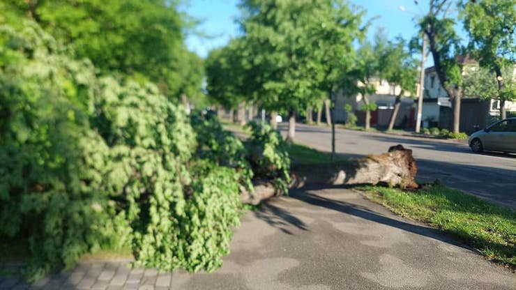 Вітер зламав більше 70 дерев пошкодив 230. Найбільше постраждали Солом’янський та Святошинський райони, повідомляє Київзеленбуд.