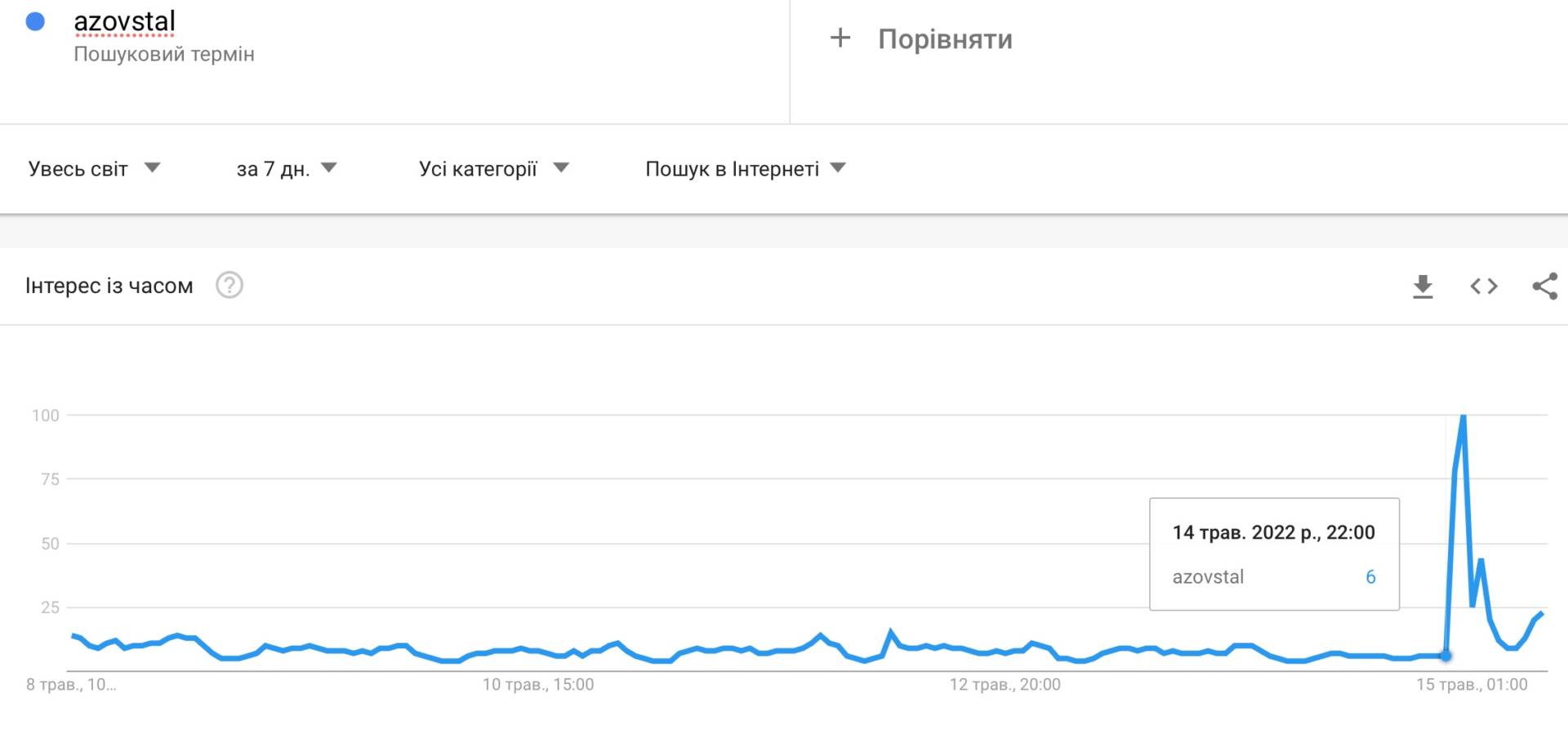 Пошукові запити в Google щодо Азовсталі та Маріуполя багаторазово стрибнули після виступу українського гурту Kalush Orchestra на Євробаченні у Турині.