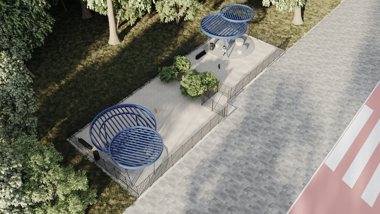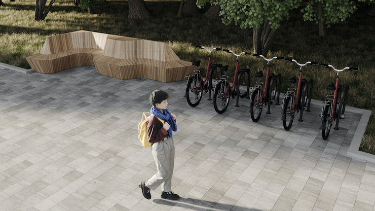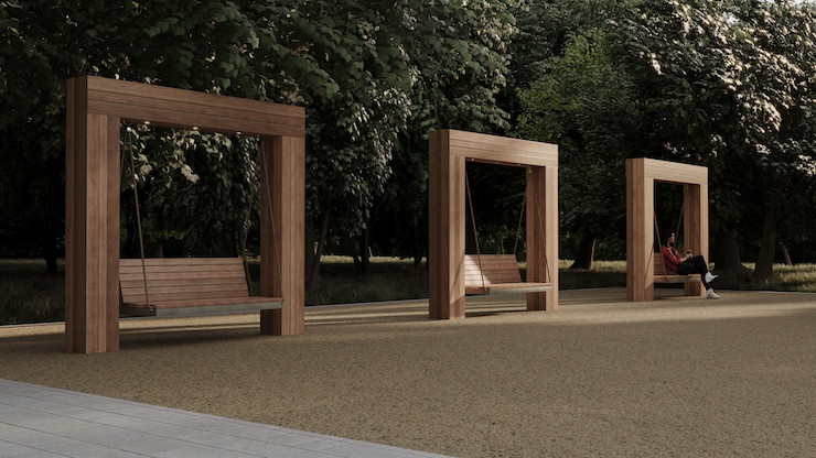 У ще одній зоні розташували би дерев’яні гойдалки. В іншій — пластикові лави-«крісла» у вигляді хвилі під навісом.