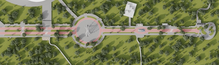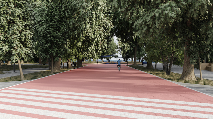 Велосипедно-бігова доріжка з асфальту проходила б крізь усю алею та закінчувалася біля вежі.