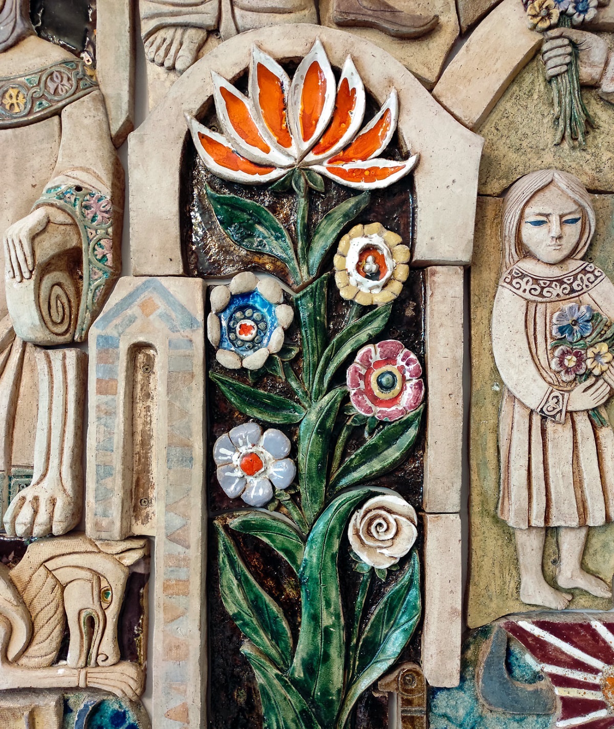 Художники-реставратори Національного заповідника «Софія Київська» завершили реставрацію та монтаж керамічного панно Галини Севрук «Місто на семи горбах», яке демонтували у жовтні минулого року з фоє київського готелю «Турист».