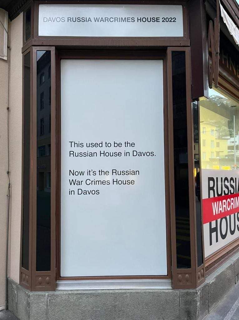 У швейцарському Давосі відкриється українська виставка Russia War Crimes House у будівлі, яка багато років була російським домом. Захід відбудеться з нагоди щорічної зустрічі Всесвітнього економічного форуму (ВЕФ) у Давосі.