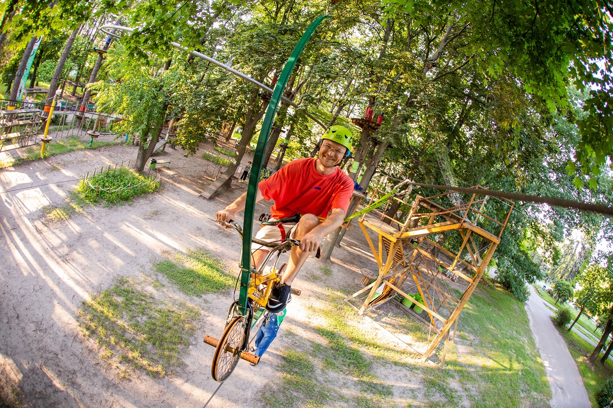 У SkyPark розташовано дев’ять мотузкових трас різної складності: для дітей віком від 3-х років, підлітків та дорослих. Там можна прохатись на скейті чи велосипеді по тросу серед дерев, пройти спіраль ДНК, загадковий тибетський мостик, хиткий рукохід, або відчути, що таке вільне падіння на пристрої QuickJump.