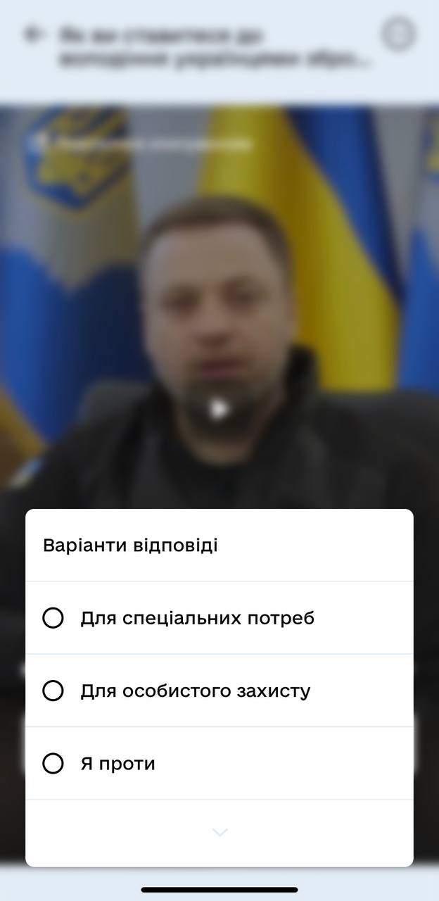 У застосунку «Дія» запустили нове опитування щодо володіння вогнепальною зброєю. Як пояснив міністр цифрової трансформації Михайло Федоров, це зроблено за дорученням міністра внутрішніх справ.